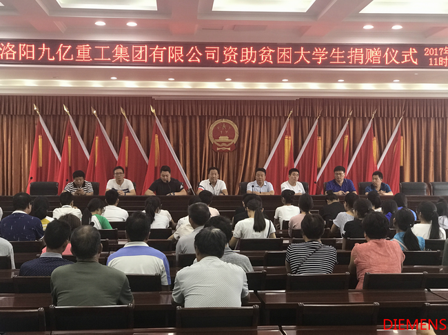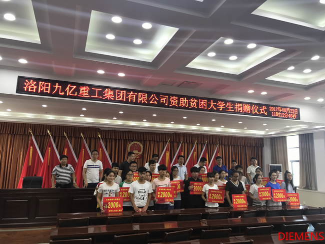 為響應洛陽市政府精準扶貧政策,洛陽九億重工集團有限公司及董事長王九茂積極參與捐資助學的慈善義舉活動,特做出如下決定:1、公司幫扶磁澗鎮(zhèn)2017年新招貧困大學生21名順利入學,每人資助2000元,總計肆萬貳仟元整;
