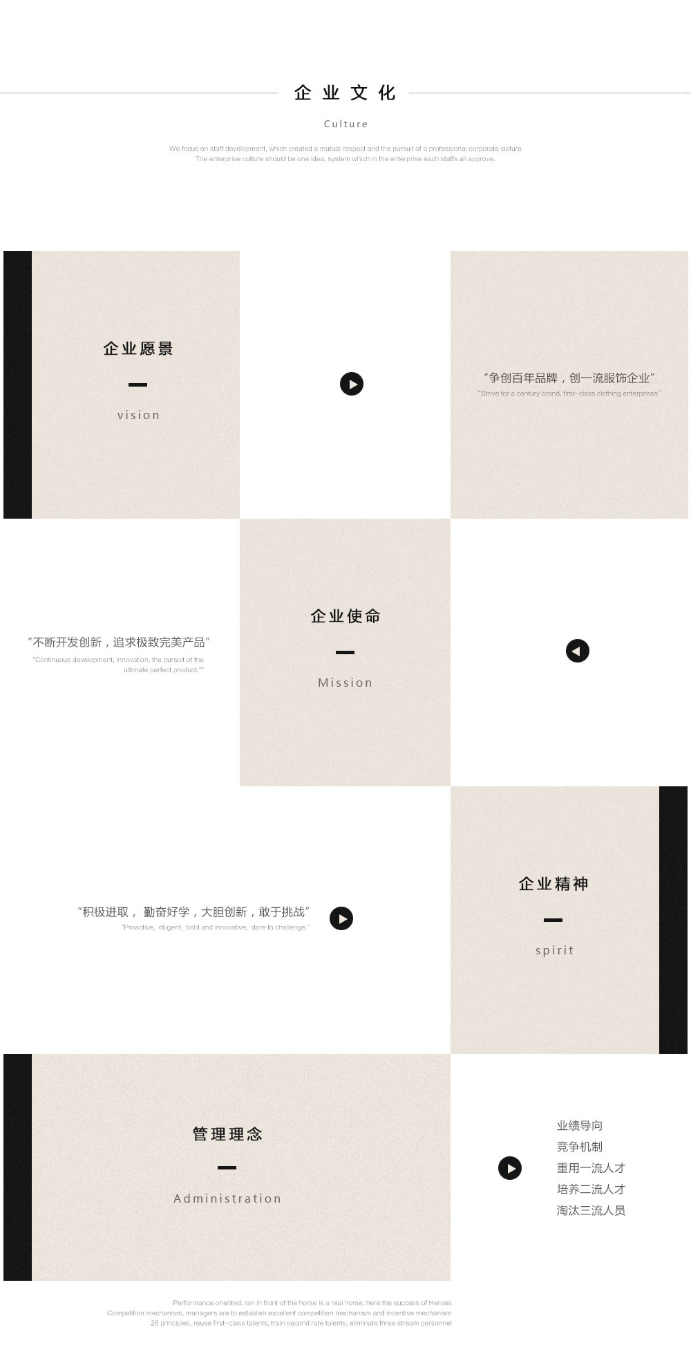 企業(yè)使命:做男裝全品類最專業(yè)的定制企業(yè),打造成全球男裝個(gè)性化定制服裝一站式服務(wù)平臺(tái),提供高貴不貴的定制服裝,使人們更健康美麗。
